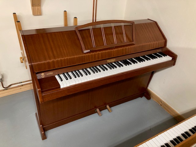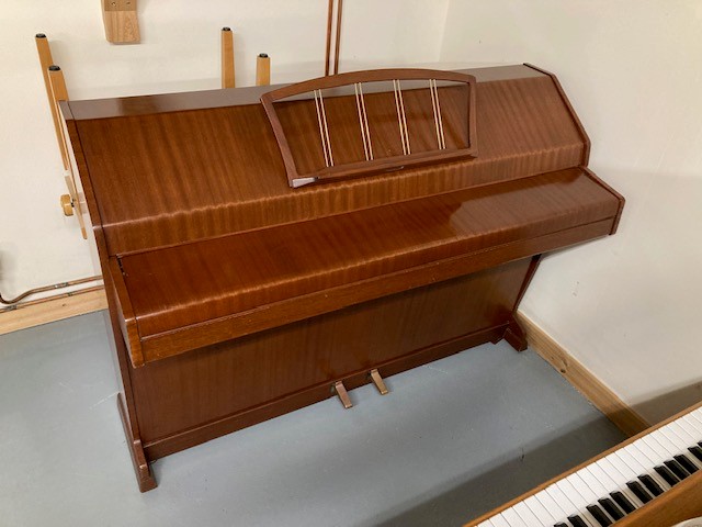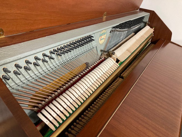 Here we have a lovely example of a British built Eavestaff Mini Royal upright piano. This one dates from 1966 and has a mahogany satin case work. This piano is in lovely condition inside and out, having been well cared for throughout its life, it has also benefitted from a full service and action overhaul by ourselves. 85 notes, two pedals.